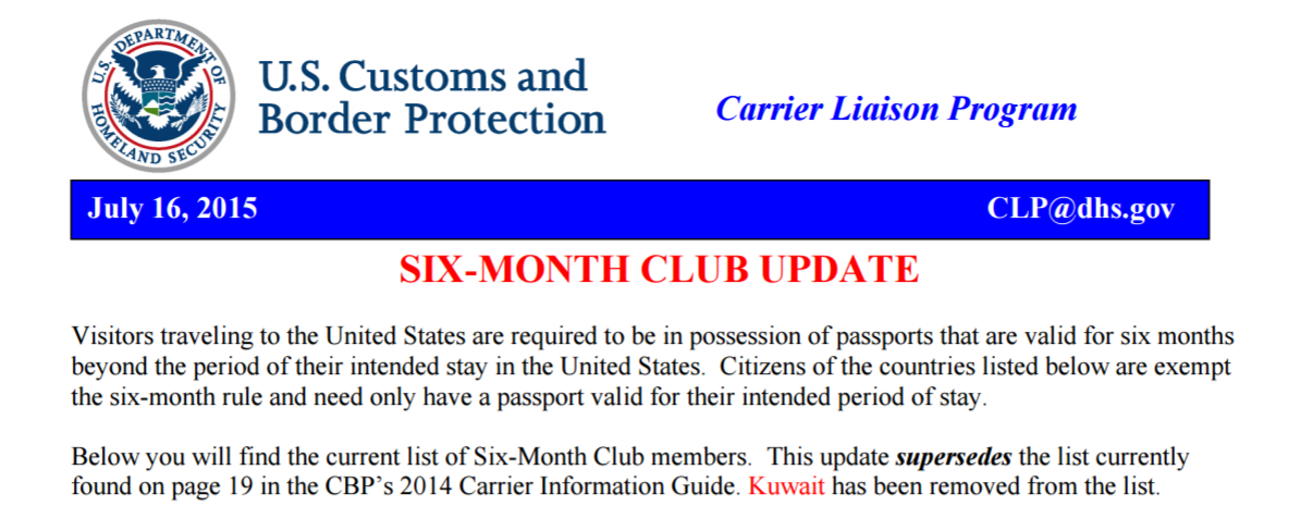 以下の6Month Clubに指定される国のパスポートの場合は6か月以上のパスポート有効という条件が免除されます。