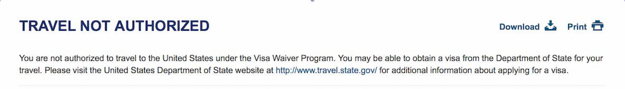 アメリカ合衆国はセキュリティの方針上、渡航は承認されませんでした(渡航認証拒否)となった場合の