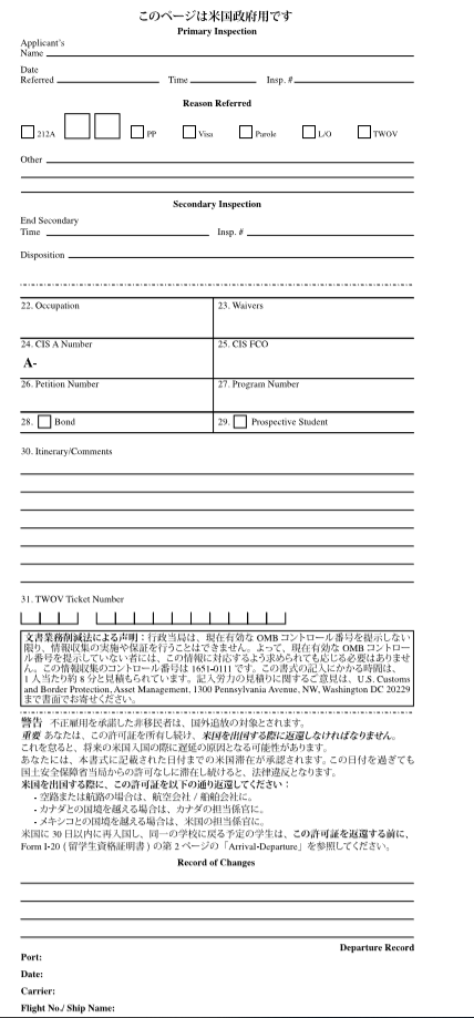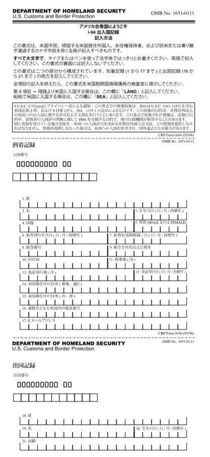現在、I-94Wと呼ばれる出入国カードが必要な渡航者は、アメリカのビザ(就労、留学、その他査証)を持っている人は本来通り、I-94Wと呼ばれる出入国カードを記入する必要があります。