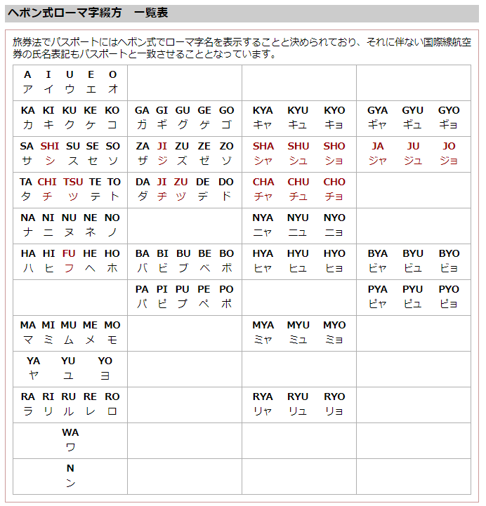 旅券法でパスポートにはヘボン式でローマ字名を表示することと決められており、