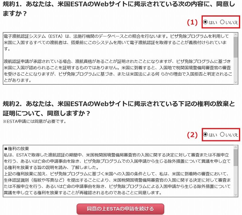 ●VWP ESTAビザ免除プログラム等によりビザなしでアメリカ通過・滞在が認められている場合