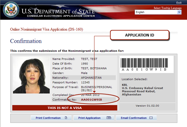 重要:作成されたDS-160申請書には10桁のバーコード番号が付与されますが、これはオンラインの面接予約の際に必要となります。必ず控えておいてください。