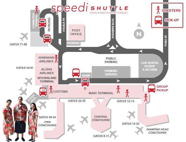 滞在先ホテル前で下車が可能。少人数の場合はタクシーよりも経済的。事前の予約なしで乗れるスピーディシャトル、事前に予約が必要なロバーツハワイエクスプレスシャトルなどがあります。